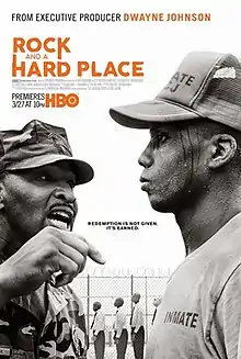 Rock and a Hard Place is a documentary film produced by and featuring Dwayne Johnson about youth prison boot camps in Miami, Florida, premiered by HBO in March 2017. It was directed and co-produced by Oscar-nominated filmmakers Jon Alpert and Matthew O'Neill.[1][2][3][4]