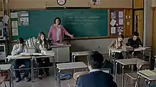 Blitz believed that Hal's stuttering was a metaphor for his lack of mastery of life and love: "He can't control this thing that ought to be so simple ... And so much of his life is like that."[17] Journalist Mark Baumer highlighted the juxtaposition of Hal with the fast-talking debaters, who are at opposite ends of the spectrum with their speech but are both struggling with communication and expression.[20] Blitz said that "Even when [the children] can speak incredibly fast and are packing their sentences with tons of SAT words, they still don't know exactly what they're talking about. There is still a question about whether their content of what they're talking about matches up with what they're feeling or trying to express. Whether it's the kid who's talking a million miles an hour, but saying nothing or the kid who isn't able to get out any word at all they're both at the mercy of not knowing how to express what's inside them."[20]