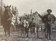 While much of White's early life is unknown, he was born into slavery in Missouri sometime in the mid-19th century.[1] After being freed, White made his way to Roslyn, Washington before being hired for a mine construction job in Mason County.[2] He filed a claim under one of the Homestead Acts for land and crossed the Puget Sound, from Seattle to Tahuya, on September 2, 1890. Two members of his party drowned while attempting to land the ferry in heavy winds.[3][4] He quickly built a reputation for being a hard worker with "a heart of gold" and worked on his homestead until his death from pneumonia on August 27, 1913.[5][1] By the time of his death, his homestead had grown to nearly 160 acres.[2] His two donkeys, Baltimore and Babe, were given to the Woodland Park Zoo after his death.[3]