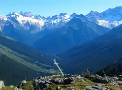 Rogers Pass is a high mountain pass through the Selkirk Mountains of British Columbia, but the term also includes the approaches used by the Canadian Pacific Railway (CP) and the Trans-Canada Highway. In the heart of Glacier National Park, this National Historic Site has been a tourist destination since 1886.[1]