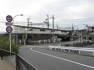 Firstly, there is the relatively recent addition of a station at the terminus of the Subway Tozai Line that runs from Uzumasa Tenjingawa Station in Kyoto down to the southeastern part of the city.[1] Secondly, in proximity to the municipal subway station is the station operated by West Japan Railway Company, on the Nara Line. Rapid trains from Kyoto now also stop here (in addition to the local trains) and the trip normally takes no longer than 12 minutes. Finally, approximately 150 m (490 ft) from both the subway and JR stations is the Rokujizo station operated by the Keihan Electric Railway.