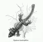 - ↑ Savitzky, A. H., Townsend, V. R., Jr, Hutchinson, D. A. and Mori, A. (2004). Dermal characteristics, scale row organization, and the origin of macrostomy in snakes. J. Morphol. 260,325