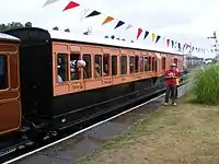 | LBSCR | 7598 | Bogie First | Built in 1903. Returned to traffic in 1999 and won the 'Best Coach of the Year' award for 2002/03. After some time awaiting tyre turning, the coach has now returned to regular service. | ![]() |