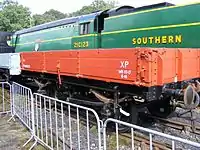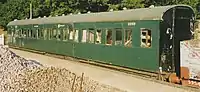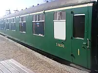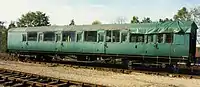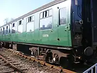 | SR | 11201 | 4-COR DMBTO | Built in 1938 for Set 3142. Preserved by the Southern Electric Group in 1972. Left Ashford Steam Centre in 1976 and went to the Nene Valley Railway where it acted as passenger coaches for the NVR's re-opening train in 1977.[54][55] Cosmetically restored in SR livery and put on display at Horsted Kenyes in 2005 until 2015. In June 2017, 11201 moved to a private site in Sellindge, Kent with two other carriages from 4-COR set 3142.[56] | ![]() |