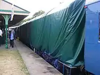 | SECR | 971 | Hundred Seater | Built in 1923. Withdrawn from traffic in 2007 for what was hoped to be a quick overhaul. Examination revealed a much heavier amount of work was required on the carriage's side panels and underframe, as well as a need to replace rotted sections of the roof and internal partitions, as well as re-trimming of the seats. The carriage is currently in store awaiting restoration. | ![]() |