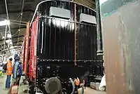 | SR | 2-6-0 | Maunsell U Class | Maunsell Locomotive Society[17] | No. 1618. Built in 1928. Arrived at Bluebell 1977 from the Kent & East Sussex Railway. Last worked in 1994 and is on static display awaiting a 10-year overhaul. Its tender was loaned to the Watercress Line in 2010 as a replacement for classmate 31806's, which was heavily damaged in a fire at Ropley. The tender was returned to the Bluebell in mid-2011, 31806's having been repaired. 31618 has been painted in lined BR black to match the tender, and to smarten the appearance of the engine up after many years in the shed. The overhaul is not likely to start until the work has completed on others. Its overhaul requires boiler work, including firebox and re-profiled tyres. | ![]() |