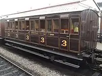 | LSWR | 25 | 6-wheeled 34-ft Family Saloon | Built in 1885. Stored awaiting restoration. Stored on underframe of carriage no. 4035 | ![]() |