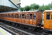 Four carriages built in 1898 and 1900 for use out of Baker Street station in London. Initially steam hauled, later used in electric trains, reverting to steam haulage on the Chesham branch in 1940. Purchased by the Bluebell Railway in 1961, and used until withdrawn in the late 1960s in need of major attention. Now returned to service and are unique as a close-coupled set of vintage carriages. The restoration team were the recipient of the Heritage Railways Association's award as overall winner of their 2006/7 carriage competition. The carriages have seen regular use on London Underground in recent years as part of steam operations on the Metropolitan line, and possess TOPS identities for movements over the Network Rail network to and from London.