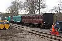 | LBSCR | 676 | Stroudley 4-wheel Brake Third | Built in 1875. Stored awaiting restoration. Moved into the OP4 carriage shed at Horsted Keynes in 2018.[27][28] Now on underframe of PMVY 1728 [29] | ![]() |