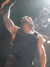 Roman Reigns made his main roster television debut as on November 18, 2012, at the Survivor Series pay-per-view event alongside Dean Ambrose and Seth Rollins, assaulting Ryback during the triple threat main event for the WWE Championship, allowing CM Punk to retain the title, thus establishing themselves as villains.[40] The trio declared themselves The Shield and vowed to rally against "injustice", while also denying working for Punk, even though they would routinely emerge from the crowd to attack Punk's adversaries, including Ryback and WWE Tag Team Champions Team Hell No (Daniel Bryan and Kane).[41][42][43][44] This led to a six-man tag team Tables, Ladders, and Chairs match at TLC: Tables, Ladders & Chairs on December 16, in which Reigns, Ambrose and Rollins defeated Team Hell No and Ryback in their debut match.[45] The Shield continued to aid Punk in January 2013, attacking both Ryback and The Rock.[46][47] On the January 28 episode of Raw, it was revealed that Punk and his manager Paul Heyman had been paying The Shield and Brad Maddox to work for them.[48]