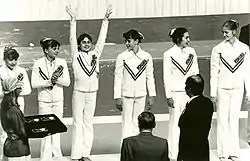 Medal ceremony for the Romanian National Team at the Montreal 1976 Summer Olympics.