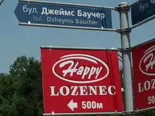 Romanization of Bulgarian is the practice of transliteration of text in Bulgarian from its conventional Cyrillic orthography into the Latin alphabet. Romanization can be used for various purposes, such as rendering of proper names and place names in foreign-language contexts, or for informal writing of Bulgarian in environments where Cyrillic is not easily available. Official use of romanization by Bulgarian authorities is found, for instance, in identity documents and in road signage. Several different standards of transliteration exist, one of which was chosen and made mandatory for common use by the Bulgarian authorities in a law of 2009.[1][2][3]