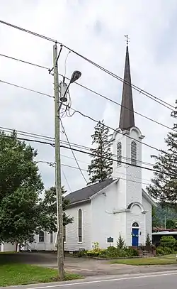 Roscoe Presbyterian Church and Westfield Flats Cemetery is a historic Presbyterian church and cemetery on Old NY 17 in Roscoe, Sullivan County, New York. The church was built about 1884 and is a simple rectangular wood-frame building, three bays wide and three bays deep, with a large rear cross-gabled wing. It features a narrow, engaged, center entrance tower surmounted by a spire. The cemetery contains about 200 burials, with the earliest dating to the first decade of the 19th century.[2]
