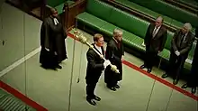 Hudson-Wilkin came to wider attention as the first black female to hold the role of Queen's Chaplain.[30] When she was appointed to the Commons some people alleged that this was an act of political correctness on the part of the Speaker John Bercow. Ultimately, the traditional role was split in two with Hudson-Wilkin remaining in her Hackney parish and attending the Commons to lead prayer and services at the Chapel of St Mary Undercroft, while Andrew Tremlett took up the post of Canon of Westminster and Rector of St Margaret's, Westminster.[31]