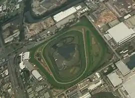 The Rosehill Gardens Racecourse is located in the Western Sydney suburb of Rosehill, in the state of New South Wales, Australia. It is operated by the Australian Turf Club. Rosehill holds horse races for thoroughbred gallopers on a grass surface. It is one of the two premier racecourses in Sydney, the other one being Randwick Racecourse. One of the main events held at Rosehill is the Golden Slipper race for two-year-olds. The track has a circumference of 2,048 metres (6,719 ft) with a home straight of 408 metres (1,339 ft).[2]