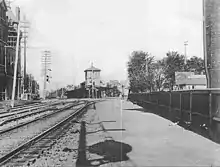In April 1901, the Delaware, Lackawanna and Western Railroad announced track depression and raising throughout portions of the line through Newark and the Oranges. Although the depression went into Newark, most of the debate over localities of stations was basically into the Oranges.[10] In 1903, the track depression reached the Roseville Avenue Station, and the lines were depressed through Roseville.[6] The new station built during the track depression was of similar style, with the station in the middle of the five-track interlocking, with one platform servicing the Montclair Branch's two tracks and one for the Main Line's two tracks. Rather than crossing at-grade, Roseville Avenue was bridged over the tracks with a brand new street-level interlocking tower present at the intersection of Roseville and Seventh Avenues.[11]