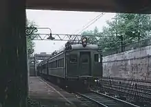 The station continued receiving major service over the next five decades, but by 1966, fewer trains stopped at the station, with limited daily service to the station past the 4:33 p.m. train from Hoboken Terminal.[13] Six years later, on June 24, 1972, the Erie–Lackawanna Railroad, who now maintained the station, announced further cutbacks on station service, axing twenty-three train stops at Roseville Avenue for both directions of service. The changes were made as part of major commuter service appropriations and the lack of patronage at the station. From that point, Roseville Avenue went from 37 westbound trains to 14, while eastbound was cut from 37 to 16. Service on Saturdays were cut to flag stops only, while the station received no Sunday service at all.[14] On April 1, 1976, the Erie–Lackawanna Railroad became defunct, and merged into Consolidated Rail Corporation (Conrail), with service sponsored by the New Jersey Department of Transportation.[6]