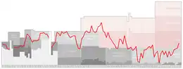 In the past, the local derbies versus Schwarz-Weiß Essen were big events, sometimes followed by more than 30,000 fans, however since their rivals decline the rivalry has waned in importance.[4][5] Although often clouded in political terms, the "reds" were left-wing and the "blacks" right-wing, in reality there was no real distinction. The rivalry was more based on geography of the city, a north (RWE) versus south (SWE) city divide.[6] While the reputation of northern Essen has been attached to the working class in the past decades, the south of the city is generally regarded as a wealthier area, inhabited by an upper-middle class.[7]