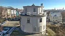 The Round House is a cylindrical, wood-frame residential building at 36 Atherton Street in the Spring Hill neighbourhood of Somerville, Massachusetts, United States. It was built in 1856 by hardware manufacturer Enoch Robinson, and is considered an offshoot of the octagon house-style popularized by phrenologist Orson Fowler. [1]
