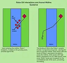 - ↑ Kidd T, Bland KS, Goodman CS (March 1999). "Slit is the midline repellent for the robo receptor in Drosophila". Cell. 96 (6): 785–94. doi:10.1016/S0092-8674(00)80589-9. PMID 10102267. S2CID 15284604.