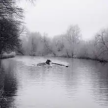 A Thames, or English, punt is a long slender vessel. It sees very few and often intermittent or extremely local races. Its use is almost wholly recreational. Thames skiffs are the mainstay of several regattas and six extant clubs (see below). A large version with a canvas is called a camping skiff, featuring in major modern travelogues and historically in Three Men in a Boat, published in 1889,[2] a humorous account by English writer Jerome K. Jerome of a two-week boating holiday on this river from Kingston upon Thames to Oxford and back to Kingston.[3][4] Other rowing typically takes place in dragon boats, dongolas, dinghies, inflatable rafts and larger skiffs known as cutters.