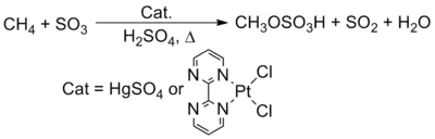- ↑ Periana, R.A.; Taube, D.J.; Evitt, E.R.; Loffler, D.G.; Wentrcek, P.R.; Voss, G.; Masuda, T. (1993). "A Mercury-Catalyzed, High-Yield System for the Oxidation of Methane to Methanol". Science. 259 (5093): 340–343. Bibcode:1993Sci...259..340P. doi:10.1126/science.259.5093.340. PMID 17832346. S2CID 21140403.
