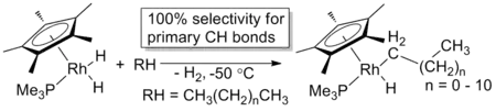 - ↑ Periana, R.A.; Bergman, R.G. (1986). "Isomerization of the hydridoalkylrhodium complexes formed on oxidative addition of rhodium to alkane carbon-hydrogen bonds. Evidence for the intermediacy of .eta.2-alkane complexes". J. Am. Chem. Soc. 108 (23): 7332–7346. doi:10.1021/ja00283a032.
