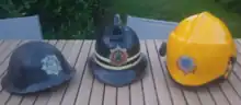 Left a B&RFB Dispatch Riders helmet, Middle a RBFB Sub Officer 'Middlesex' Produced by Cromwell and Right is a RBFRS Pacific F7.
