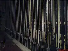 The counterweight fly system has recently been refurbished. There were originally in excess of 70 fly lines, however, this has been reduced to about half that number in order to increase the distance between bars.