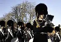 The Royal Life Guards Music Band (Danish: Den Kongelige Livgarde Musikkorps, DKLM) is the foremost military band in the Danish Defence and the official regimental band of the Danish Royal Life Guards. The DKLM is based in Copenhagen and primarily participates in parades and ceremonies for the Danish monarch (currently Queen Margrethe II) and the Danish royal family. It also supports the government and the military, specifically increasing the esprit de corps in army units as well as in the public.