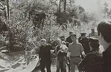 On August 21, 1992, six Marshals were sent to scout the area to determine suitable places away from the cabin to apprehend and arrest Weaver.[43][44][36]:39 The marshals, dressed in military camouflage, were equipped with night-vision goggles and M16 rifles.[13][45] DUSMs Art Roderick, Larry Cooper, and William F. "Bill" Degan formed the reconnaissance team, while DUSMs David Hunt, Joseph Thomas, and Frank Norris formed an observation post (OP) team on the ridge north of the cabin.[46]