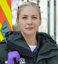 Producers incorporated some of Hill's own characteristics into Ruby's personality as they learnt more about her.[2] The character's backstory states that she has just graduated from university.[1] Hill thought this reflected how real-life paramedics were sent into the job without time "learning on the job".[3] She added that the NHS needs people immediately due to how overstretched it is, so Ruby believes that she can "hit the ground running".[3] The actress also felt this aided her portrayal of the character as they were both starting new experiences.[4] Ruby's costume is a paramedic uniform, which Hill enjoyed wearing. She dubbed it her "ninja turtle suit" and was likened to Lara Croft while wearing it.[3] The design of the costume meant that Hill could wear thermals underneath, which helped her in the colder months.[4]