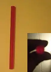 A ruby laser most often consists of a ruby rod that must be pumped with very high energy, usually from a flashtube, to achieve a population inversion. The rod is often placed between two mirrors, forming an optical cavity, which oscillate the light produced by the ruby's fluorescence, causing stimulated emission. Ruby is one of the few solid state lasers that produce light in the visible range of the spectrum, lasing at 694.3 nanometers, in a deep red color, with a very narrow linewidth of 0.53 nm.[3]