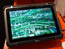 A rugged computer or ruggedized computer is a computer specifically designed to operate reliably in harsh usage environments and conditions, such as strong vibrations, extreme temperatures and wet or dusty conditions.[1] They are designed from inception for the type of rough use typified by these conditions, not just in the external housing but in the internal components and cooling arrangements as well.[2]