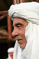 Each team in this game consists of five members. The rope is thick and about 12 m (39 ft) in length, with a flag in the middle. The team that can pull the rope and the flag to their side is the winner. Usually, this is a competition between two tribes, two villages, or two families.[40]