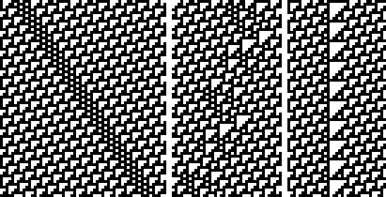 An animation of the way the rules of a 1D cellular automaton determine the next generation, using Rule 110.
