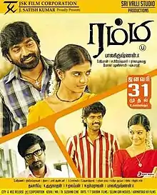 In December 2012, Vijay Sethupathi signed up a project for debutant K. Balakrishnan, former assistant of N. Linguswamy who impressed him with his script.[4] The film is said to be set in the 1980s.[5] According to sources, Rummy is a dark romantic thriller. The first look was released on 4 October 2013.[6] While it was reported that actress Remya Nambeesan, a trained classical singer, would be making her Tamil singing debut with this film, the song apparently doesn't appear in the soundtrack.[7][8] Contrary to popular thought, Inigo Prabhakar plays the male lead role although the film was marketed as a Vijay Sethupathi film.[9]