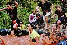 Run For Your Lives (RFYL) is a 3-5K obstacle course adventure run series created by Maryland-based Reed Street Productions (RSP). Like other obstacle races, runners navigate through various terrain and physically challenging obstacles. Unlike other obstacle races, runners try to dodge and escape from zombies roaming the course trying to grab flags from runners' flagbelts, similar to flag football.[1] The course was designed to incorporate zombies as well as SERE training learned by a RSP managing-member who is active-duty navy.[2] The inaugural race had about 12,000 attendees[3] and was covered by multiple news sources.