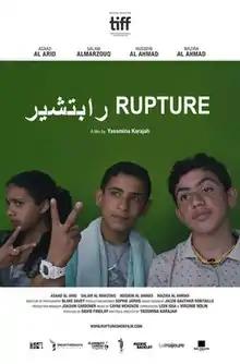 Rupture is a Canadian short drama film, directed by Yassmina Karajah and released in 2017.[1] Acted by a cast of predominantly amateur young actors, the film centres on three teenagers, all of whom are recent refugees from Syria, who are living in Vancouver and walking around town looking for a public swimming pool on a hot summer day.[1]