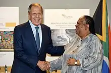 On 23–26 January 2023, Russian Foreign Minister Sergey Lavrov visited South Africa and several other African states.[36] Pandor thanked Lavrov for the "most wonderful meeting" and described Russia as a "valued partner."[37]
