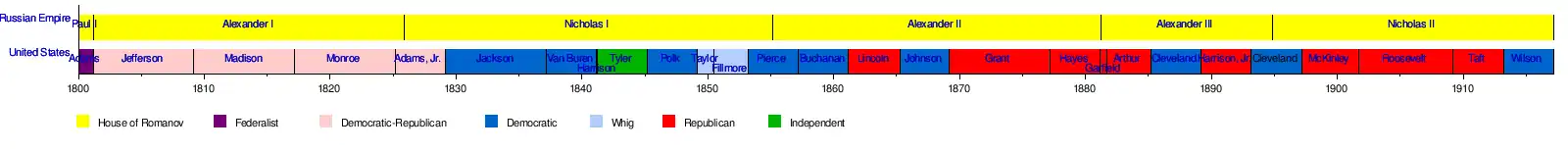 Leaders of the Russian Empire and the United States from 1800 to 1917.