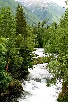 The Russian River is a 13-mile-long (21 km) river on the Kenai Peninsula in the U.S. state of Alaska. It flows northward from Upper Russian Lake in the Kenai Mountains through Lower Russian Lake, draining into the Kenai River near the town of Cooper Landing. The native Denaina people called this river Chunuk'tnu.[1]