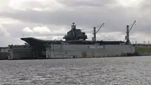 In June 2021, Vladimir Korolev, Vice President of the United Shipbuilding Corporation announced that the overhaul and upgrade of Admiral Kuznetsov was expected to be completed by the first half of 2023.[78] The avionics, flight deck with the ski jump, electric equipment, and the power plant are expected to be replaced as part of this process. The carrier would also receive a new fully domestic takeoff and landing control system, with the onboard airpower remaining the same. Due to the lack of a large enough drydock, a new drydock was being constructed in Murmansk.[79] In November 2021 it was reported that "bad weather" had caused significant delays to repair work which might push back the completion of the refit by more than one year.[80]