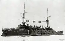 Oslyabya (Russian: Ослябя) was the second of the three Peresvet-class second-class pre-dreadnought battleships built for the Imperial Russian Navy at the end of the nineteenth century, although construction delays meant that she was the last to be completed. The ship was part of the Second Pacific Squadron sent to the Far East during the Russo-Japanese War of 1904–05, and served as the flagship of Rear Admiral Baron Dmitry von Fölkersam. Oslyabya was sunk on 27 May 1905 at the Battle of Tsushima, and was the first all-steel battleship to be sunk by naval gunfire alone. Sources differ on the exact number of casualties, but over half her crew went down with the ship.