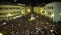 ![]() The drummers gather at Andorra's town hall square | |