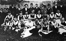 It was a powerhouse in the league during its early days competing in many finals, winning seven premierships between 1893 and 1906.[8] Such was the strength of the Rutherglen Football Club during the Gold Rush era, many VFL teams challenged this successful country club and were defeated.[9] During this era, six of the famous King brothers played for the club.