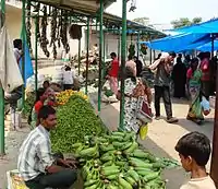 Rythu bazaar, or raithu bazaar, or raitubazar, is a type of farmers' market in the Indian states of Andhra Pradesh and Telangana. It is run by the Governments of Andhra Pradesh and Telangana for small scale farmers with small landholdings. The first market started in January 1999 by N. Chandrababu Naidu.[1] This helped small and middle scale farmers to sell their agricultural products directly to customers at an optimum price and helped them to be financially stable. The customers of towns and cities get these products directly from farmers at a lower rate. This helped farmers to sell their agricultural products directly to customers of towns and cities without involvement of any mediators, which financially assists them up to a certain extent, and the customers get quality agricultural produce at reasonable rates .