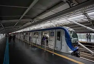 The São Paulo Metro P stock is a class of electric multiple units built by Construcciones y Auxiliar de Ferrocarriles between 2013 and 2014 to complement the rolling stock of Line 5-Lilac during the 11.5 km (7.1 mi) expansion between stations Largo Treze and Chácara Klabin. It was acquired by Companhia do Metropolitano de São Paulo and operated by it until 2018. Currently, it is operated by ViaMobilidade.[2]