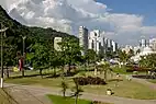 The Monument of 500 years of Brazil (Monumento dos 500 anos do Brasil) is a viewing platform on Porchat Island, an islet which extends from the south of São Vicente Island. The platform was designed by the architect Oscar Niemeyer (1907–2012). It faces roughly north in an imaginary line to the National Congress in Brasília, completed by Niemeyer and others in 1960.[8] The municipality contains part of the 901 hectares (2,230 acres) Xixová-Japuí State Park, created in 1993.[9]