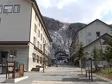 To renovate its run-down resorts, Sōunkyō and Ministry of the Environment collaborated on a reconstruction scheme in 1987.[4] 36 buildings that were in the area were demolished and integrated into 18 hotels, which were designed with ivory coloured walls and sharp roofs representing Daisetsuzan. Most of the onsen resorts were completed in July 1998, and many tourists have visited. Currently, the annual number of tourists is 3 million.[2] Recently, the center of the onsen resorts were arranged as the "Canyon Mall," which was modeled after the mountain resorts in Canada.[5]